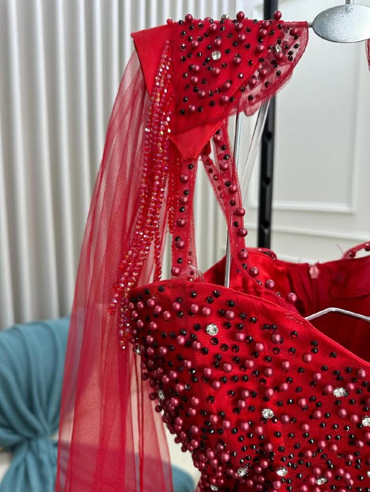 فستان سهره اللون احمر الخامة: تل اصلي درجه اولى بتطريز راقي كريستال لول فصوص نوفر فساتين نسائية بأفخم التصاميم العصرية وأحدث تشكيلات الموضة والاناقة تصاميم رائعة وحديثة تبرز جمالك وتضيف لمسة جمالية وتميز فريد لاجلك انت سيدتي💃